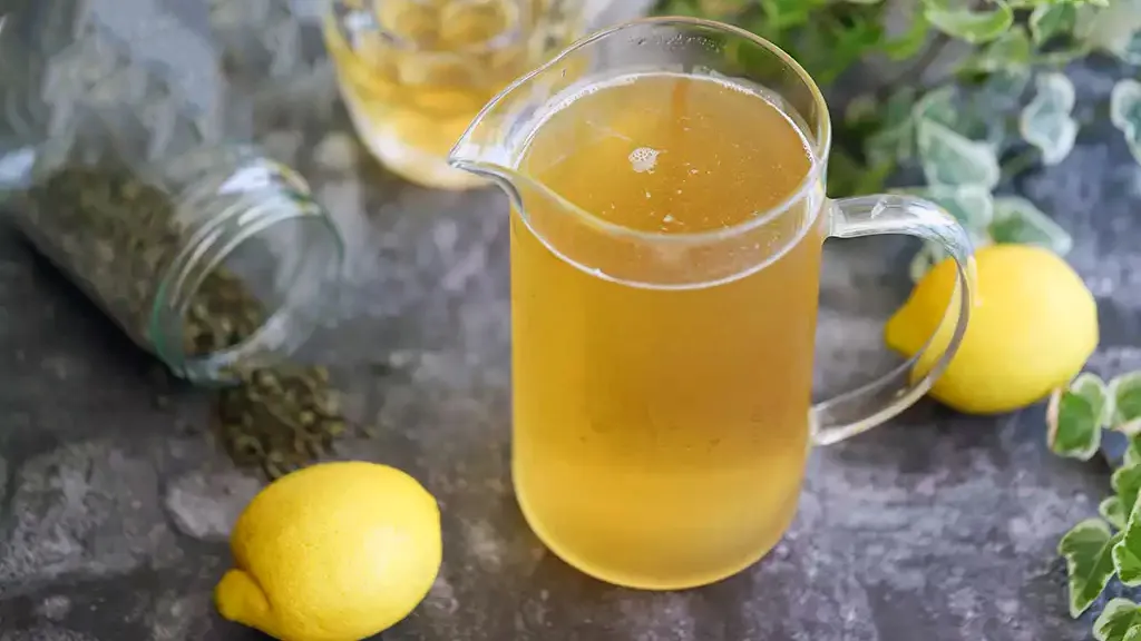 Son olarak yeşil çayı ekleyin. Yeşil çayı eklemeden önce birkaç dakika bekleyin. Daha sonra yeşil çayı demliğe döküp bitkileri demlenmeye bırakın. Çayın demlenmesi için genellikle 5-8 dakika arası yeterlidir. Çay demlenirken limonun suyunu sıkın ve sürahiye ekleyin. Normalde yarım limon eklenir denir ama isteyen daha fazla ekleyebilir. Sürahiye maden suyu da ekleyerek 10 dakika demlenen bitki çayını limon ve maden suyuna karıştırın. İsterseniz bu şekilde içebilirsiniz. Ya da soğumasını bekleyebilirsiniz.